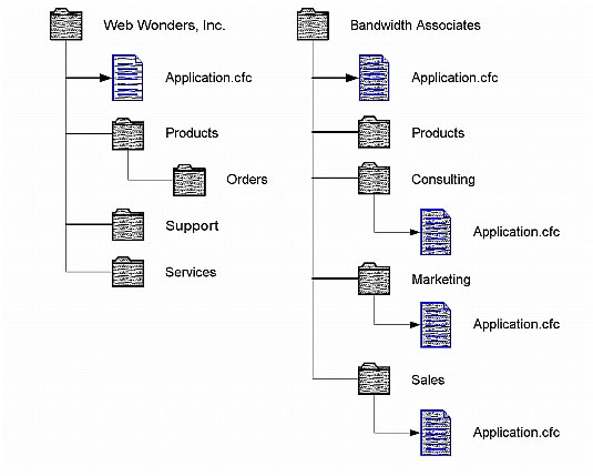 When you put your application in an application-specific directory hierarchy, you can use a single application definition (Application.cfc or Application.cfm) page in the application root directory, or put different application definition pages that govern individual sections of the application in different directories.